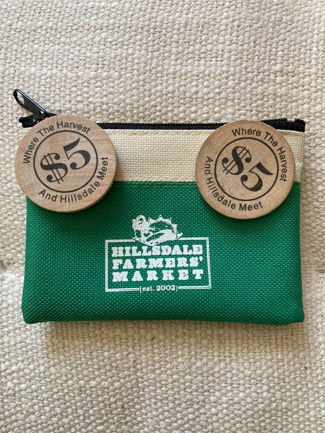 The summer counterpart to our cozy winter hats, a Hillsdale Farmers’ Market ball cap is a must-have for those sunny days. These hats are adjustable-size, with no velcro or plastic. Two colors available: beige with green embroidery, and dark grey with white embroidery.